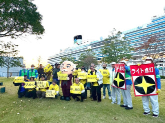 当日は同協議会のメンバーを中心に地域住民や長崎市、交通安全推進委員、大浦警察署など30人ほどが参加。グラバー園のマスコットキャラクター「グラバーさん」も駆けつけた。参加者らは「早めのライト点灯」を呼びかける黄色いプラカードなどを掲げ、ドライバーにヘッドライト点灯を呼びかけた。