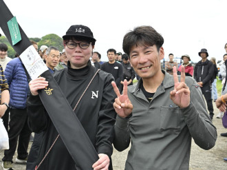 検量の結果、マダイ2匹で8.4キロの山崎さわ子さん(WHITE BASE)が優勝、7.7キロの森田祐介さん(志摩)が準優勝、7.3キロの岩崎寛さんが3位に輝いた。惜しくも入賞を逃した船の船長同士でじゃんけんを行い、入賞した船の同船者、じゃんけんに勝った船の同船者の順に全員参加でくじ引き大会を行った。残った商品を懸けたじゃんけん大会も行い、大いに盛り上がった。(カッコは遊漁船名)