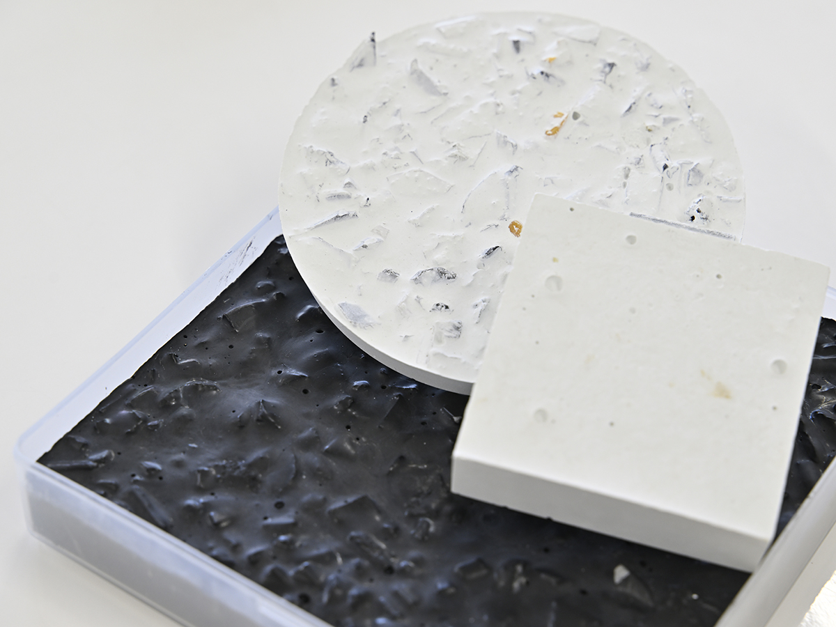 試行錯誤を重ねている海洋プラスチックごみを使ったタイル