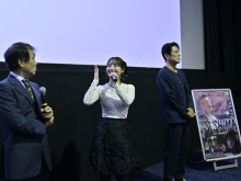 長崎を舞台にしたSFサスペンス映画「TSUSHIMA」が10月17日、ローソン・ユナイテッドシネマ長崎(長崎市尾上町)で公開され、山根高文監督と主演の山田純大さん、ヒロインの中西悠綺さんが舞台あいさつを行った。