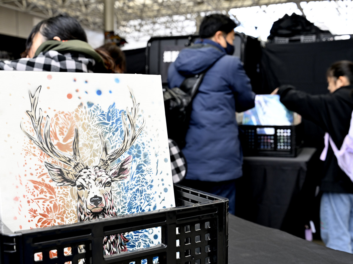 SNSで人気を集めているアーティスト「スプレーアートエデン」が12月26日、イオンチトセピア(長崎市千歳町)でイベントを開いた。