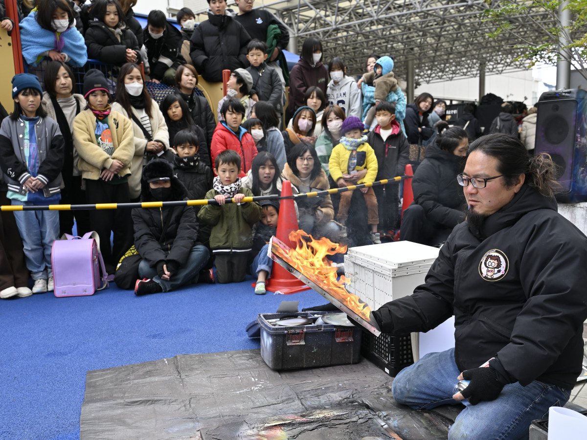 炎が上がる度に描き出される様子に大きな歓声があがった