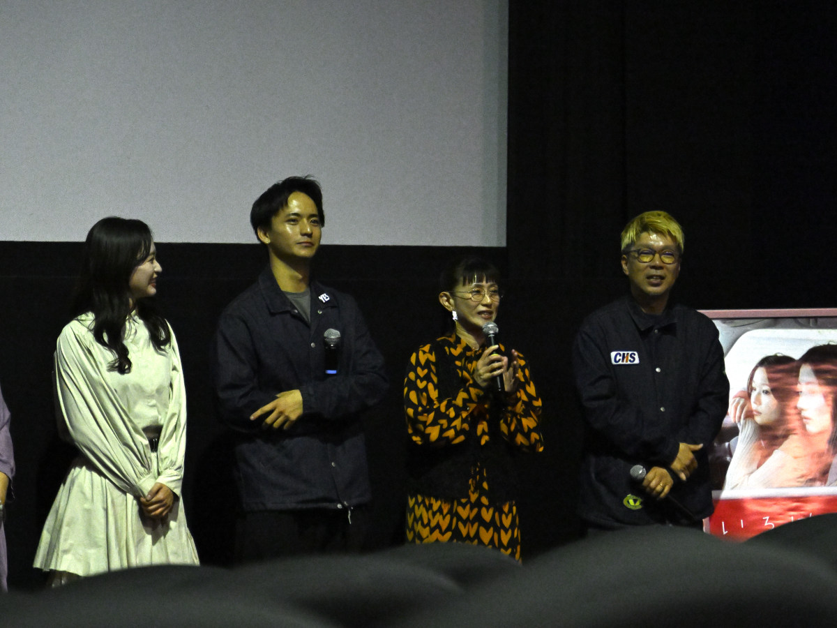 長崎県内で全編ロケが行われた映画「いろは」の完成披露試写会が4月16日、ユナイテッドシネマ長崎(長崎市尾上町)で行われ、横尾初喜監督と県民キャストらが舞台あいさつを行った。