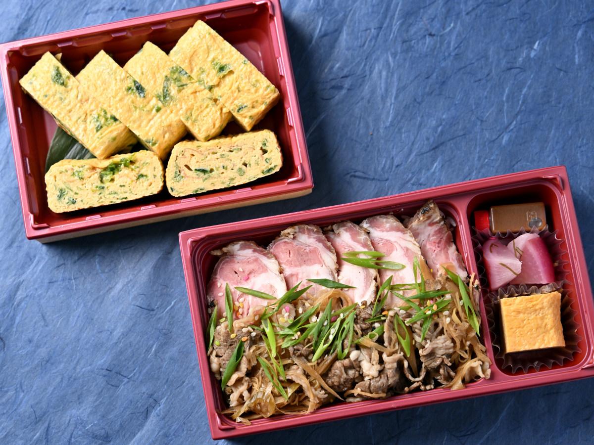 優秀賞を獲得した「長崎和牛のしぐれ煮と五島美豚の味噌漬け重」と入選した「磯の香り広がる生あおさの玉子焼き」