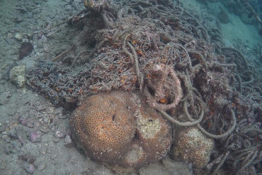 対馬のサンゴ礁に沈んだ漁具や漁網(撮影:2018年)