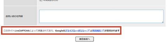▲おりこうブログに「reCAPTCHA」が導入されると、Webフォームの下部に「プライバシーポリシー文」が表示され、フォーム送信時ごとに自動で認証が行われます。※サイト閲覧者よる特別な操作は必要ありません