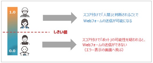 ユーザーの行動や環境情報をもとに、「人間らしさ」をスコア化して判定します。