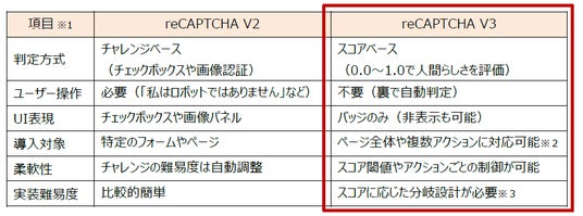 ※1:V1は2018年にサービス終了しています(歪んだ文字列(英数字)を読み取って入力する方式)