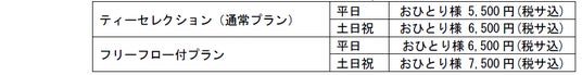 販 売 価 格 アフタヌーンティー/イブニングハイティー共通