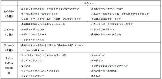 総料理長 榮岩雅幸(はえいわまさゆき)今回のアフタヌーンティーセットはクリスマスイメージのスイーツや季節の食材を用いた食事系のセイボリーなど全14種類。9月から導入したフランス エルキューイ製のアフタヌーンティースタンドにそれぞれのアイテムをクリスマスツリーに飾り付けをするようなイメージで作りあげました。ビジュアルはもちろん温度や食感にこだわり、食べ飽きないリズムのある構成にできたと思います。是非、期間限定、長崎マリオットホテルの“九州一美しい“クリスマスアフタヌーンティーをご体験ください。