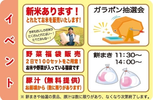・餅まき、抽選会、体験コーナーなどのイベント企画