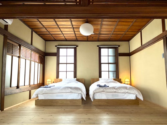 主屋ベッドルーム 中華料亭時代は一番広い宴会場でした。