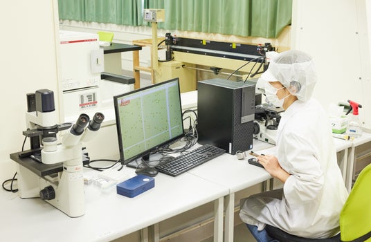 毎日生産される微細藻類は毎日島民従業員によって厳正に品質管理されている