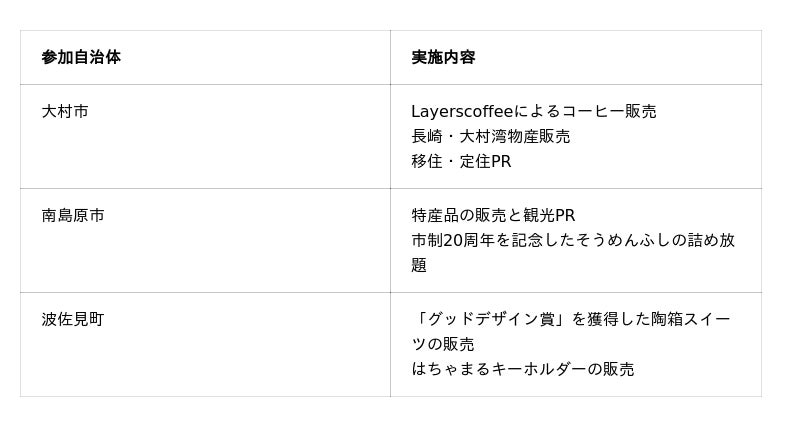 【参加自治体・団体】大村市、南島原市、波佐見町、ベーグルまるこや、株式会社ピエクレックス