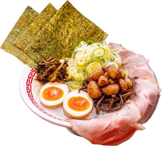 丁寧に炊き上げた濃厚な豚骨スープは、深みがありながらもまろやか。シンプルだからこそ際立つ素材本来の旨みを、贅沢な一杯にしました。チャーシュー、のり、味玉、きくらげ、辛子高菜、揚げニンニクを贅沢に盛り込み、それぞれの旨味・食感・香ばしさが幾重にも重なります。対馬で味わうからこそ価値のある、記憶に残る特別な一杯です。